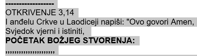... Imaš tvrdnju! Oklen ti je? Jel iz ZEMLE črne ILI iz BIBLIJE? --------------------- Ako je iz Biblije – onda daj stihove – gdje TO piše. Biblija kaže – svjedočanstvo je istinito – ako se temelji na - 2 – 3 ista svjedočenja!! Jer – odakle ti TO znanje? ,,,,,,,,,,,,,,,,,,,,,,,,, ALI – ako takovih stihova NEMA a NEMA ih ti si izmišljivač neistine! Ti daješ nešto što NIJE od Boga, a time je TO – od Oca Laži Sotone! -------------------- Zato ti Bog poručuje: OTKRIVENJE 21,8 Kukavicama pak, nevjernima i okaljanima, ubojicama, bludnicima, vračarima i idolopoklonicima i svim LAŽLJIVCIMA udio je u jezeru što gori ognjem i sumporom. To je druga smrt. Ispravi svoje krive putove!!! ============= IZJEDNAČUJEŠ STVORITELJA I STVORENJE ======== Izjednačuješ stvorenoga SINA G Yehoshuu - sa STVORITELJEM – Jedinim Bogom Ocem YHVH! Radiš isto što je Lucifer pokušao - izjednačiti se sa Bogom. Kad Lucifer TO izjednačavanje nije uspio, prebacio je TO izjednačavanje na ljude, da TO ljudi rade, sa SINOM G Yehoshuom. Kaznu za to Luciferovo djelo – znaš? Ako ne znaš – saznavat ćeš to vječno! Ispravi svoje krive puteve! ======== RIMLJANIMA 1,25 oni što su ISTINU - Boga = OCA YHVH JEDINOGA - zamijenili LAŽJU, častili i štovali stvorenje = SINA G YEHOSHUU - umjesto STVORITELJA, = BOGA JEDINOGA OCA YHVH - koji je blagoslovljen u vjekove. Amen. ====== ZA TO djelo – nema ti spasa! -----